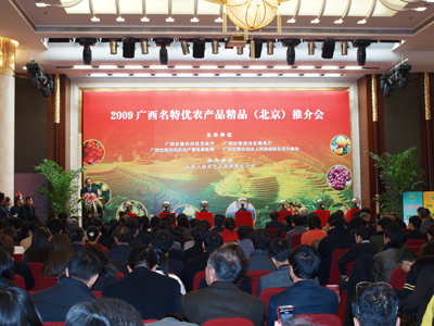 12月26日,广西名特优农产品精品(北京)推介会在北京举行。广西自治区党委副书记陈际瓦等领导出席并剪彩,广西自治区副主席陈章良和农业部总经济师张玉香先后致辞。中国农产品市场协会组织北京新发地农产品批发市场、顺鑫石门农产品批发市场市场、八里桥农产品中心批发市场、水屯农产品批发市场、大洋路农产品批发市场、城北回龙观农产品批发市场的经销商参加此次推介会。