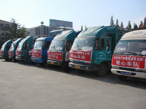5月12日四川汶川的强烈地震,波击大半个中国,牵动着全国人民的心。陕西欣绿实业有限责任公司全体干部、员工和商户心系灾民、情系灾区。一方有难、八方支援。陕西欣绿实业有限责任公司在5月15日购置了灾区急需的矿泉水,方便食品、米面油、手电筒、棉被等急需物品、约50吨,价值30万元,于5月16日,在政府民政部门的安排下,迅速送往灾区。