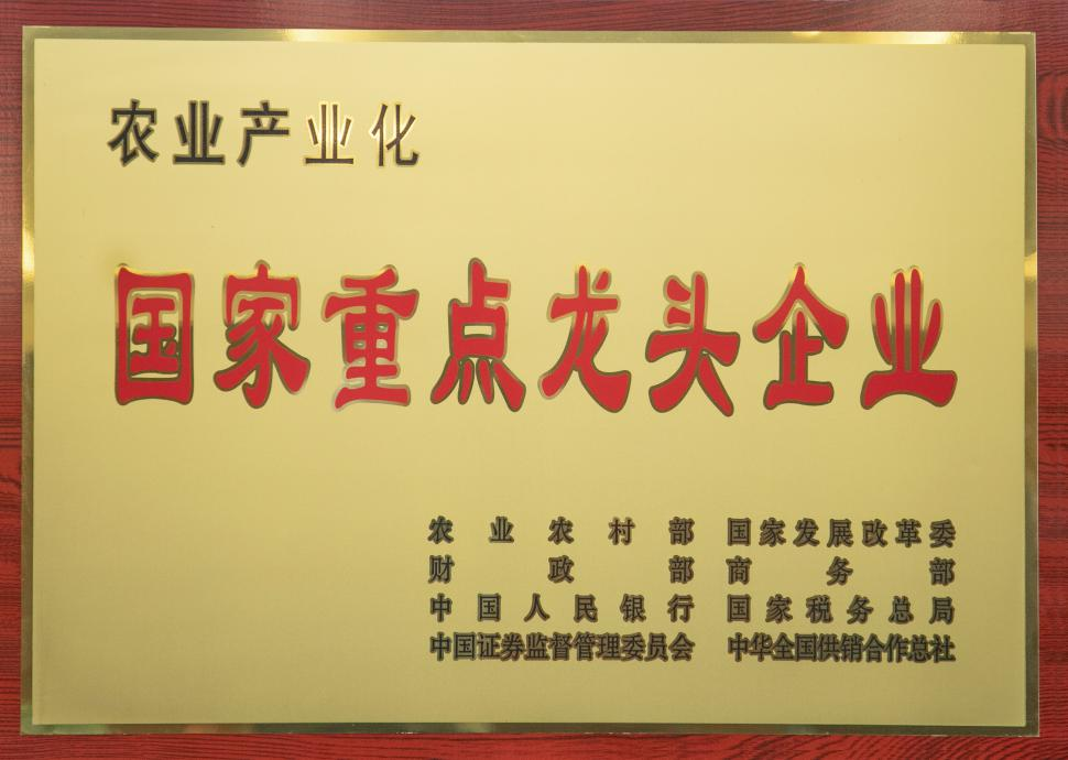 2019年11月26日,被国家八部委评委农业产业化国家重点龙头企业