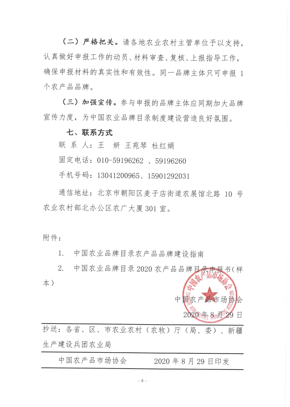 关于开展中国农业品牌目录2020农产品品牌征集工作的通知