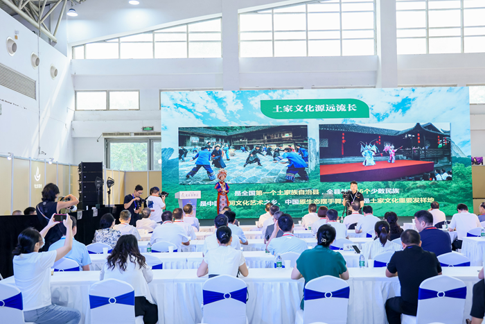 来凤藤茶推介官向梓涵介绍了来凤藤茶的高黄酮含量与“先苦后甜”的独特风味。目前,来凤县拥有10万亩生态茶园,综合产值22亿元。随后,举办了中国(来凤)藤茶产业指数编制启动仪式,该指数将推动品牌标准化建设,为产品定价、市场拓展提供数据支撑,让小众特产成为农户增收“黄金叶”。